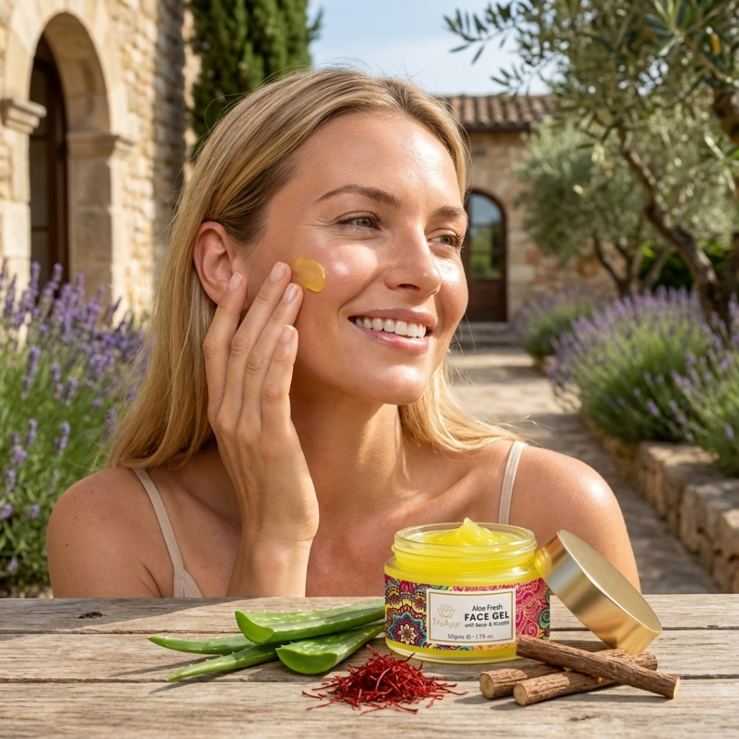 Con Fresh Aloe Vera, Saffron Face Gel, scopri i benefici senza tempo della saggezza ayurvedica uniti alla scienza moderna: un rituale di cura della pelle rivitalizzante che idrata, illumina e rafforza la tua pelle dall'interno, rendendola luminosa, equilibrata e davvero viva.