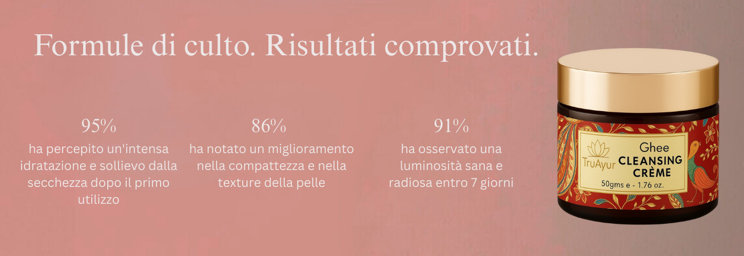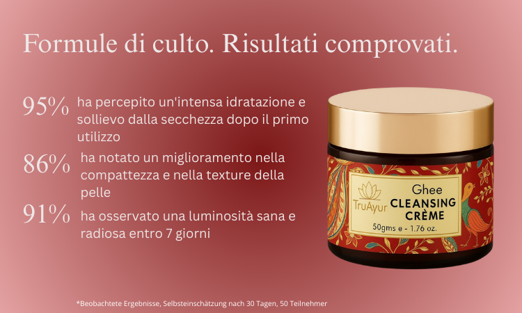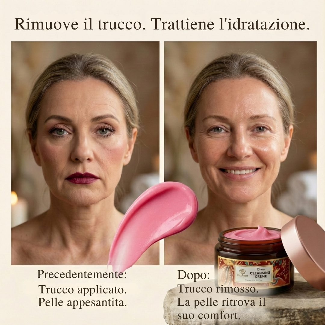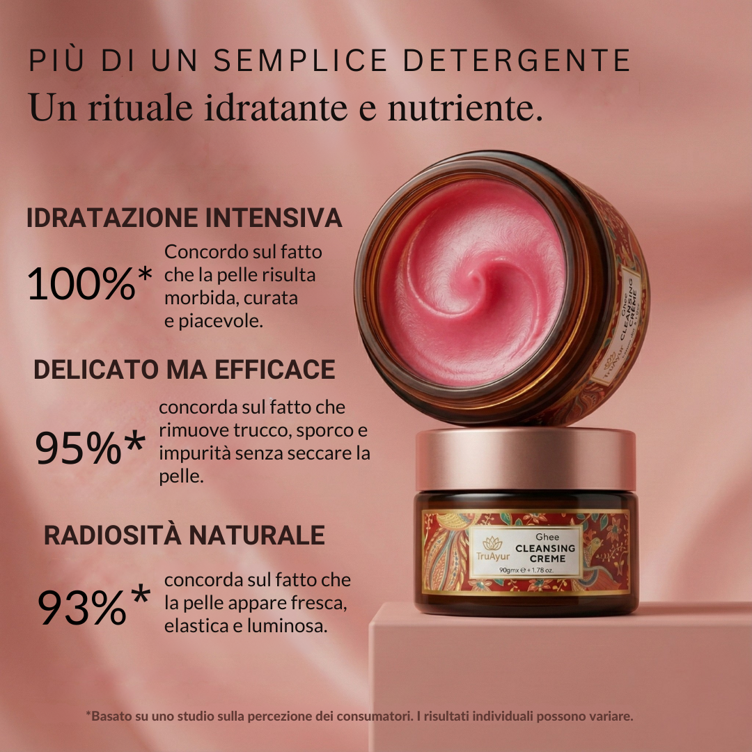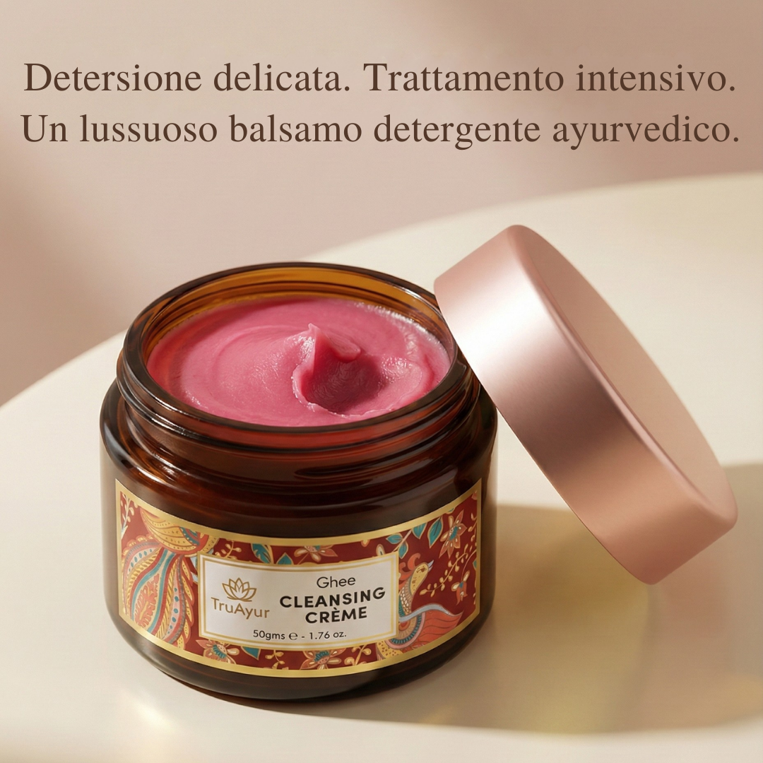 L'Ayurveda insegna che la pulizia dovrebbe nutrire, non impoverire. Con una base di burro chiarificato, venerato nell'Ayurveda per le sue qualità profondamente idratanti e riparatrici, questa formula aiuta a mantenere la barriera cutanea promuovendo morbidezza e luminosità. La sua texture rigogliosa, simile a un balsamo, si fonde facilmente sulla pelle, rendendo ogni pulizia un momento di cura intenzionale.