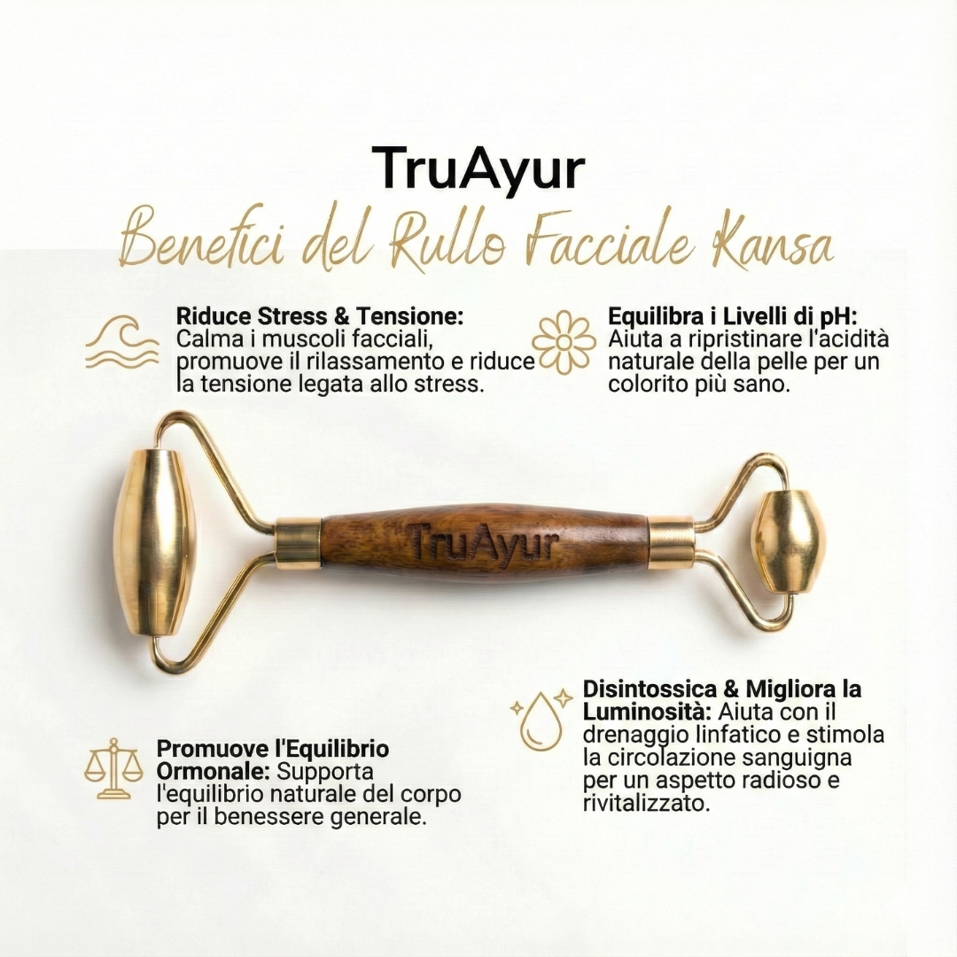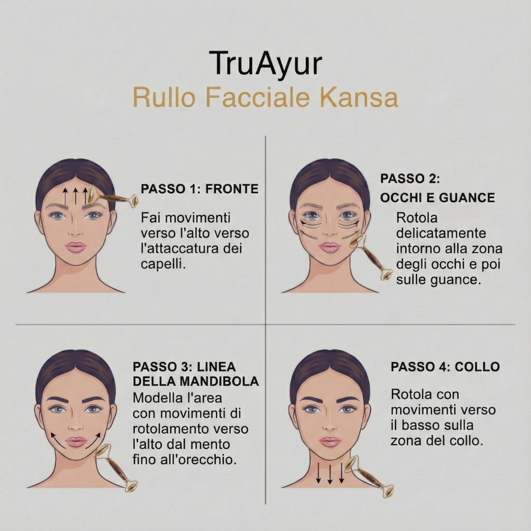 A differenza dei rulli convenzionali che si limitano a raffreddare la pelle o a esercitare pressione, il Kansa Face Roller stimola i punti marma, nodi energetici che influenzano l'equilibrio ormonale, la disintossicazione linfatica, le linee di stress e le funzioni profonde della pelle.