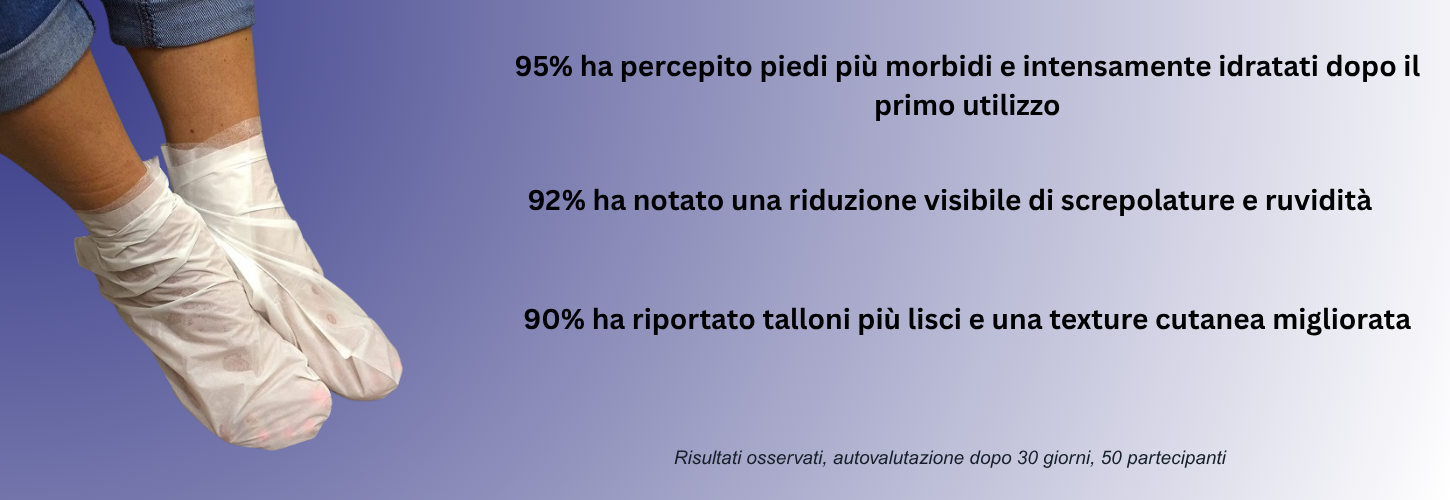 Il design a doppio strato assicura che il ricco concentrato di crema rimanga bloccato, migliorando anche l'assorbimento. È la soluzione ideale per i piedi stanchi, secchi o trascurati, offrendo un percorso senza sforzo verso suole elastiche e un rinnovato senso di benessere.