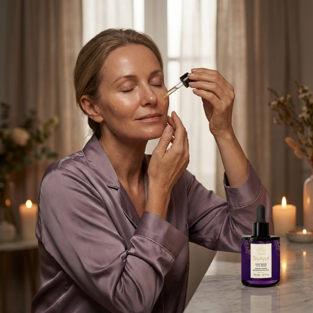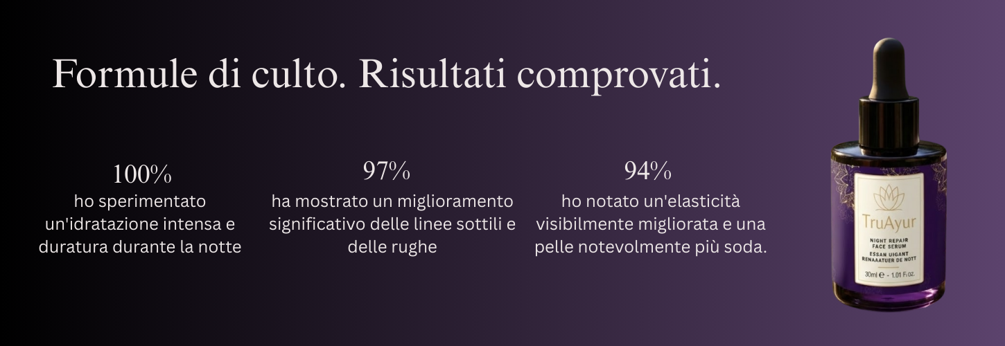 A differenza dei sieri convenzionali, questa formula agisce sul ciclo naturale di rigenerazione notturna della pelle, quando il rinnovamento cutaneo raggiunge il suo apice, aiutando a riparare i danni quotidiani e a rafforzare la barriera cutanea. La sua texture leggera si assorbe in profondità senza lasciare residui e fornisce un'idratazione intensa e peptidi rassodanti che agiscono durante la notte. Ogni mattina la pelle risveglia visibilmente più liscia, uniforme e luminosa: la perfetta armonia tra Ayurveda e scienza.